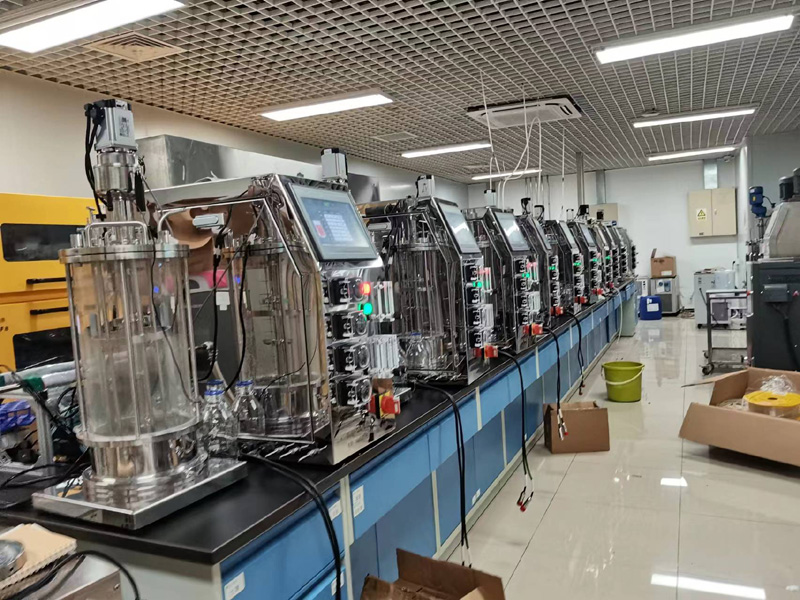 自动调节:热质量流量计调节与触摸屏显示表面空气,底部二氧化碳、氧气、氮气的流量 (动物细胞培养发酵罐标配)