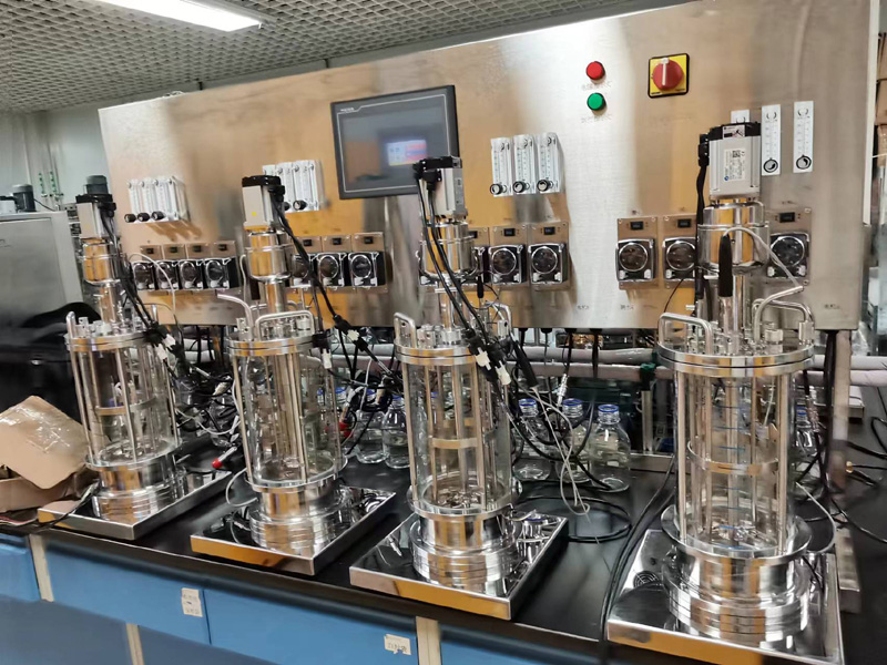 自动调节:热质量流量计调节与触摸屏显示表面空气,底部二氧化碳、氧气、氮气的流量 (动物细胞培养发酵罐标配)